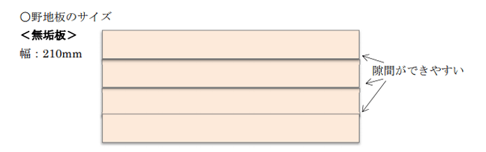 合板に比べて小幅なため、施工に手間がかかり、また隙間ができやすい。
