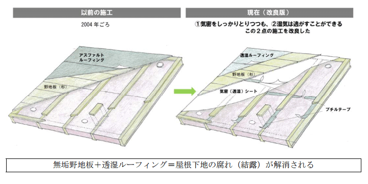 無垢野地板+透湿ルーフィング=屋根下地の腐れ(結露)が解消される
