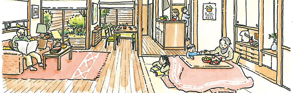 家をつくって家族がバラバラに!?子供やお年寄りが孤独にならず、リビングに家族が笑顔で集え、幸せに暮らせる家づくりを間取りから追求しています。
