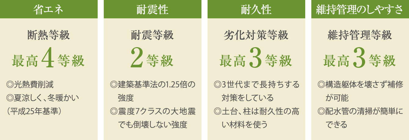 一般の工務店で「長期優良住宅」「建設評価」を標準仕様にしているところはこれまでほとんどありません。優しい空気が流れるエアパスの気持ち良さ・自然素材による住み心地の良さに「長期優良住宅」「建設評価」が加わり、資産価値は格段に高いものになります。