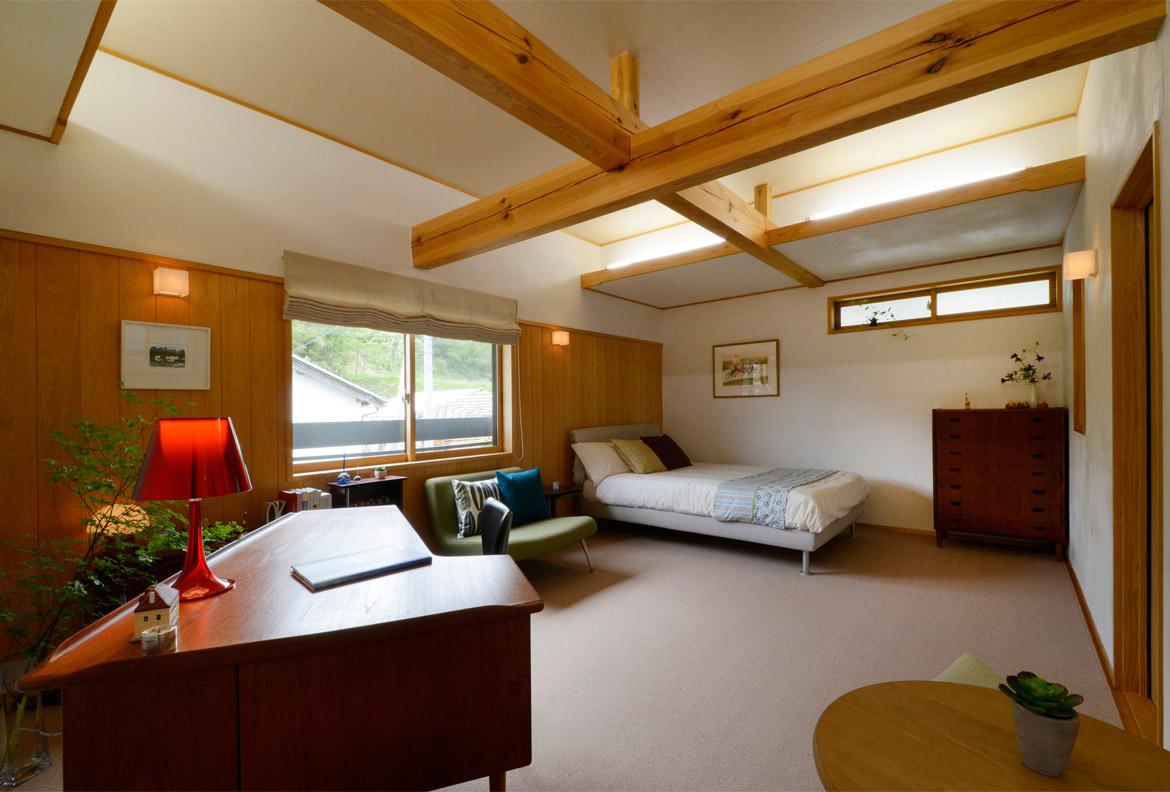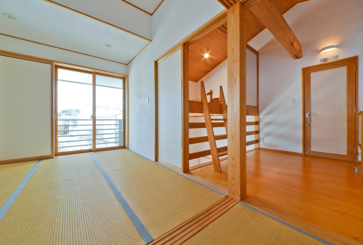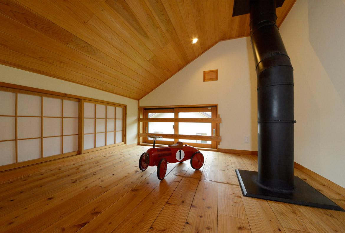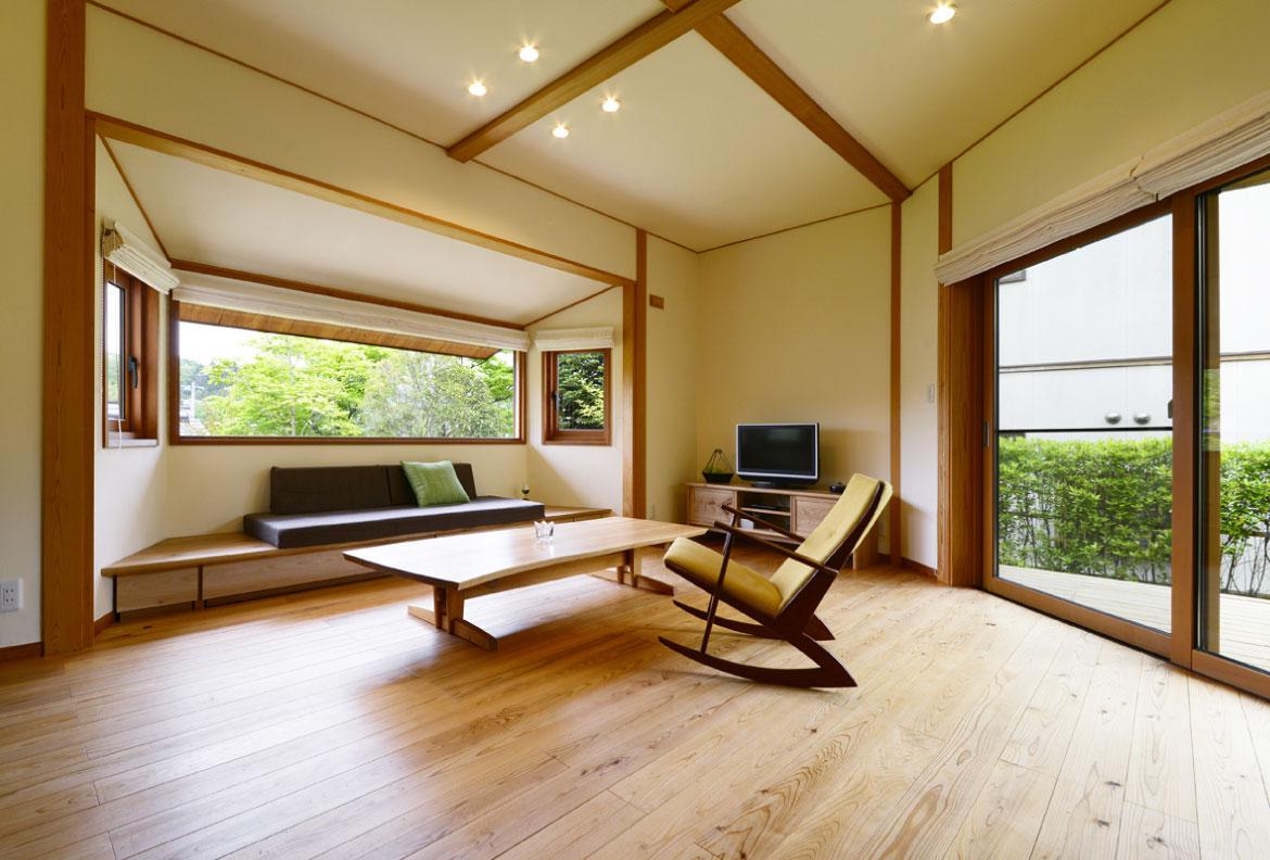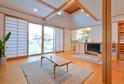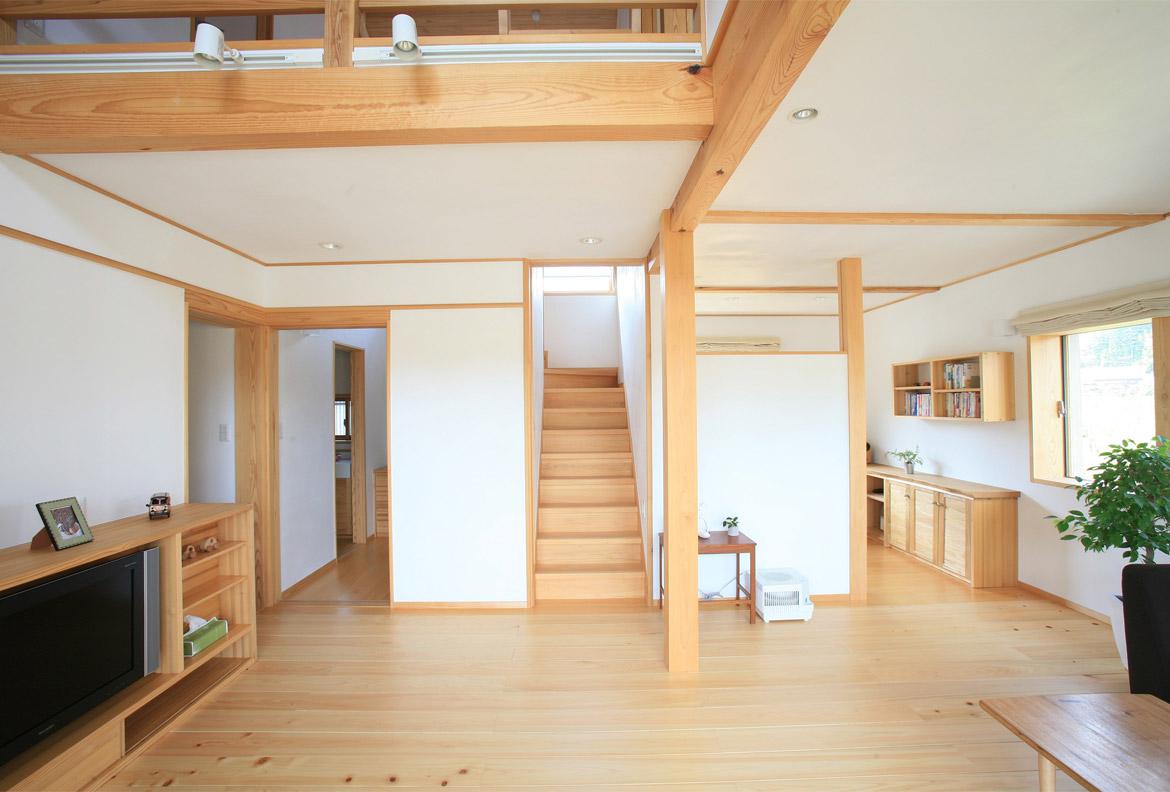 エアパスの家の快適さ、家に流れる空気の綺麗さを堪能できる家です。ワンフロアの板の間のリビング、書斎コーナーは開放感いっぱい。