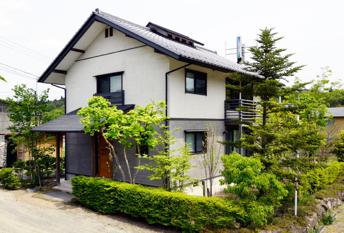築10年以上の建物を一部改修。開放的な広々としたリビングには自慢の大きな窓、美しい庭と平田村の自然がパノラマのように広がっています。
