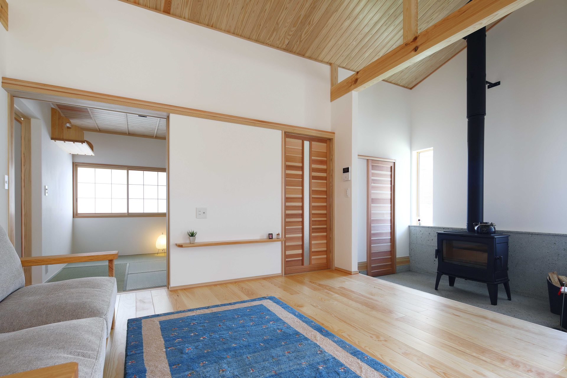 暖炉と広々デッキで楽しむアウトドアな暮らし