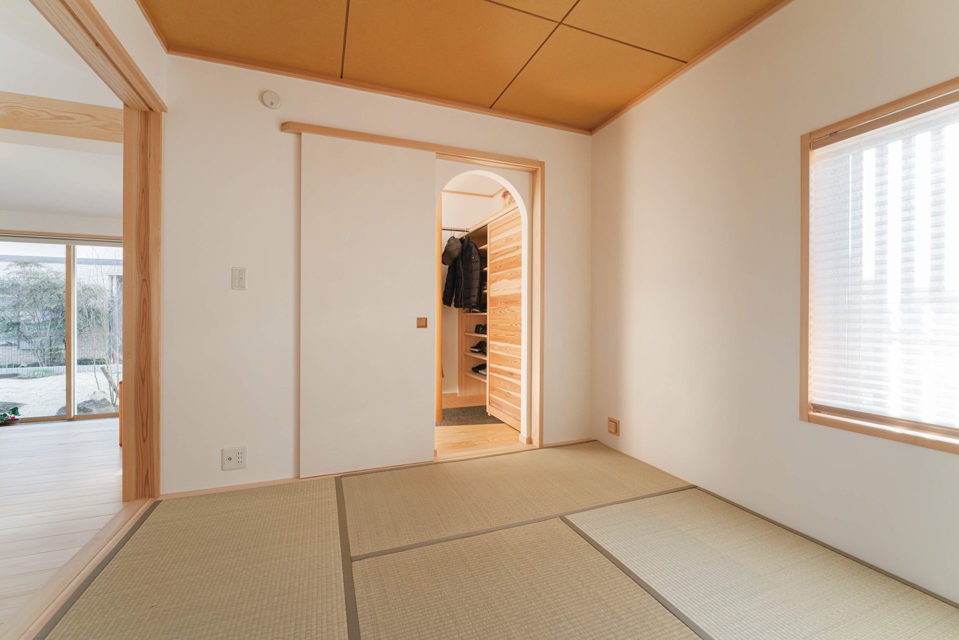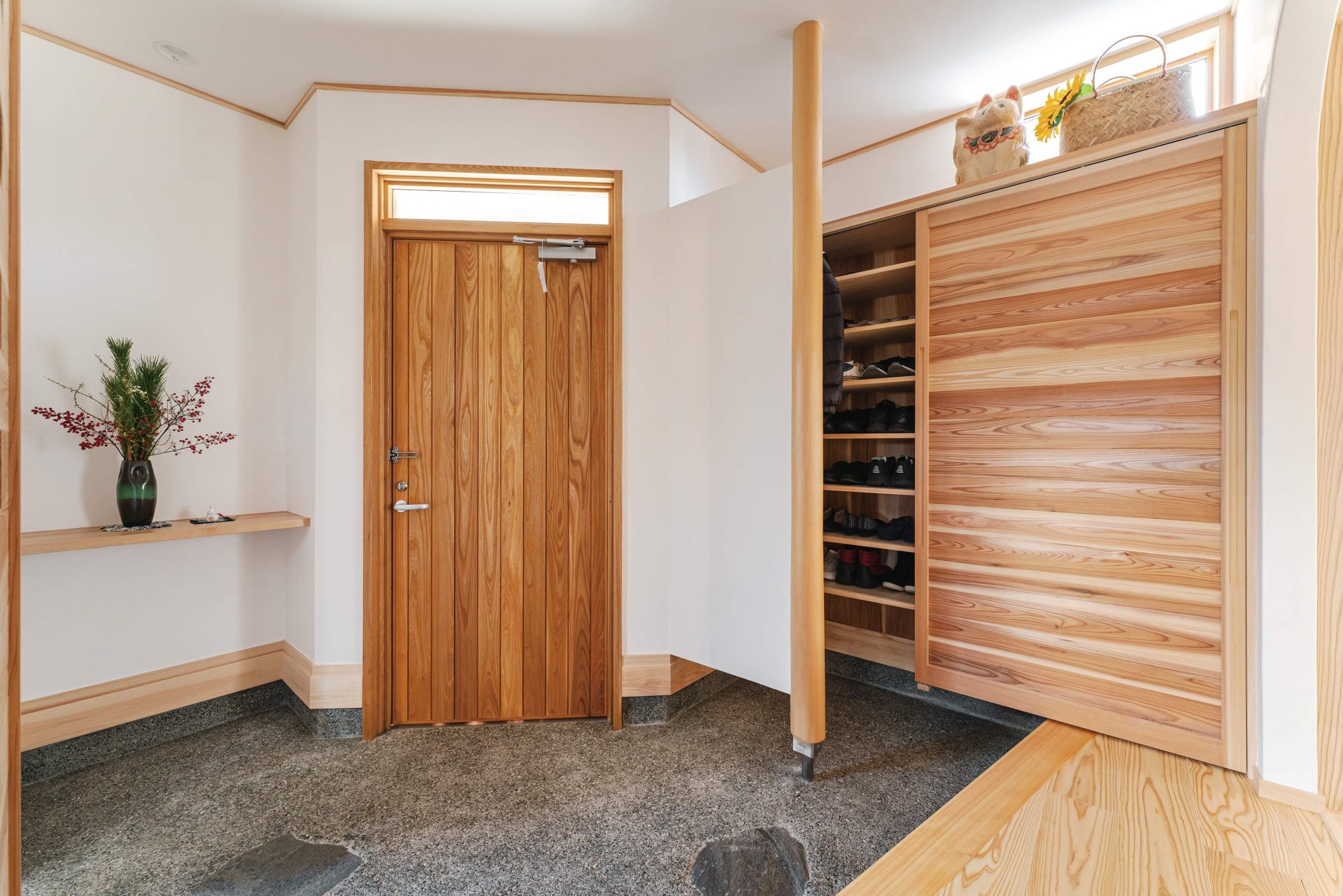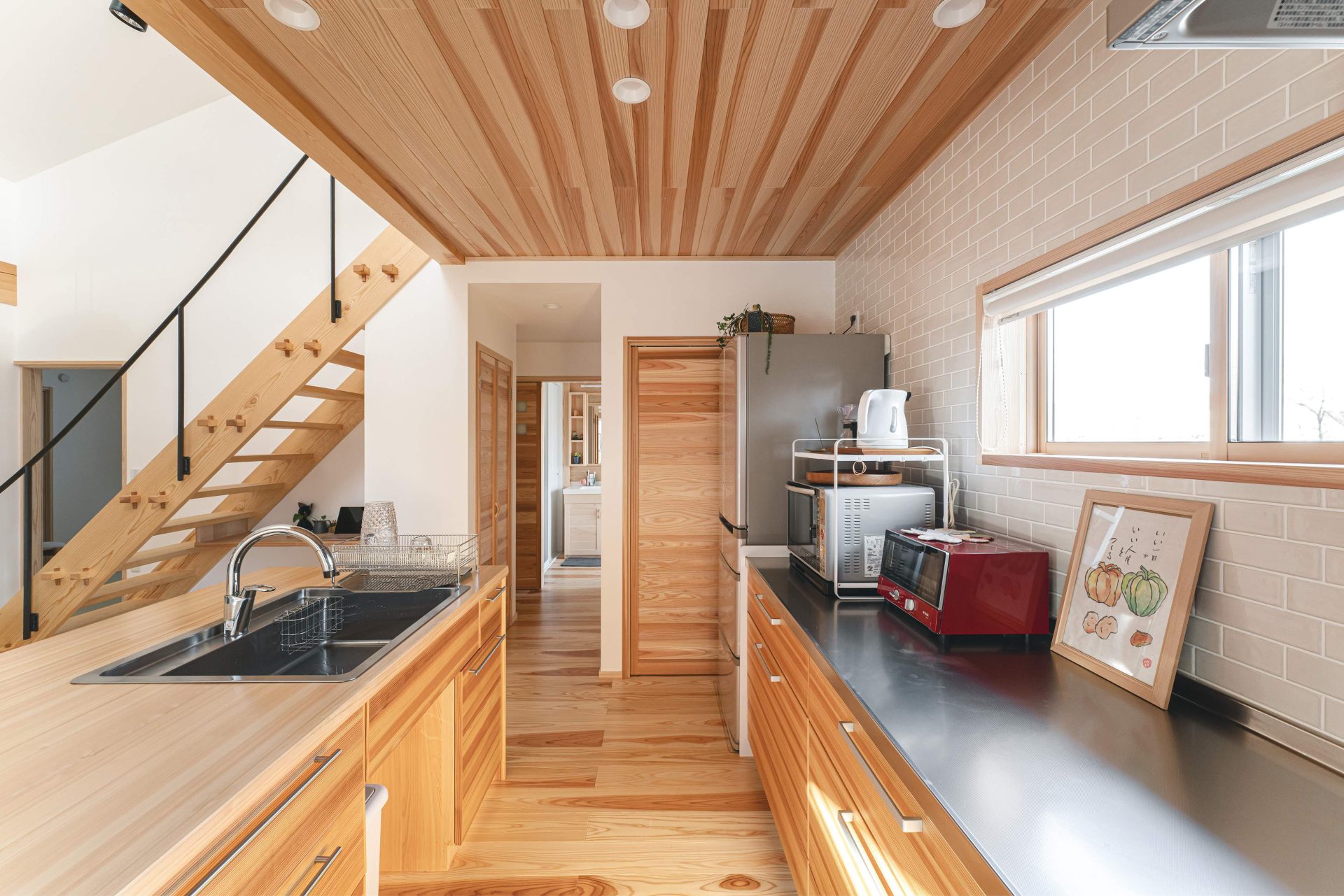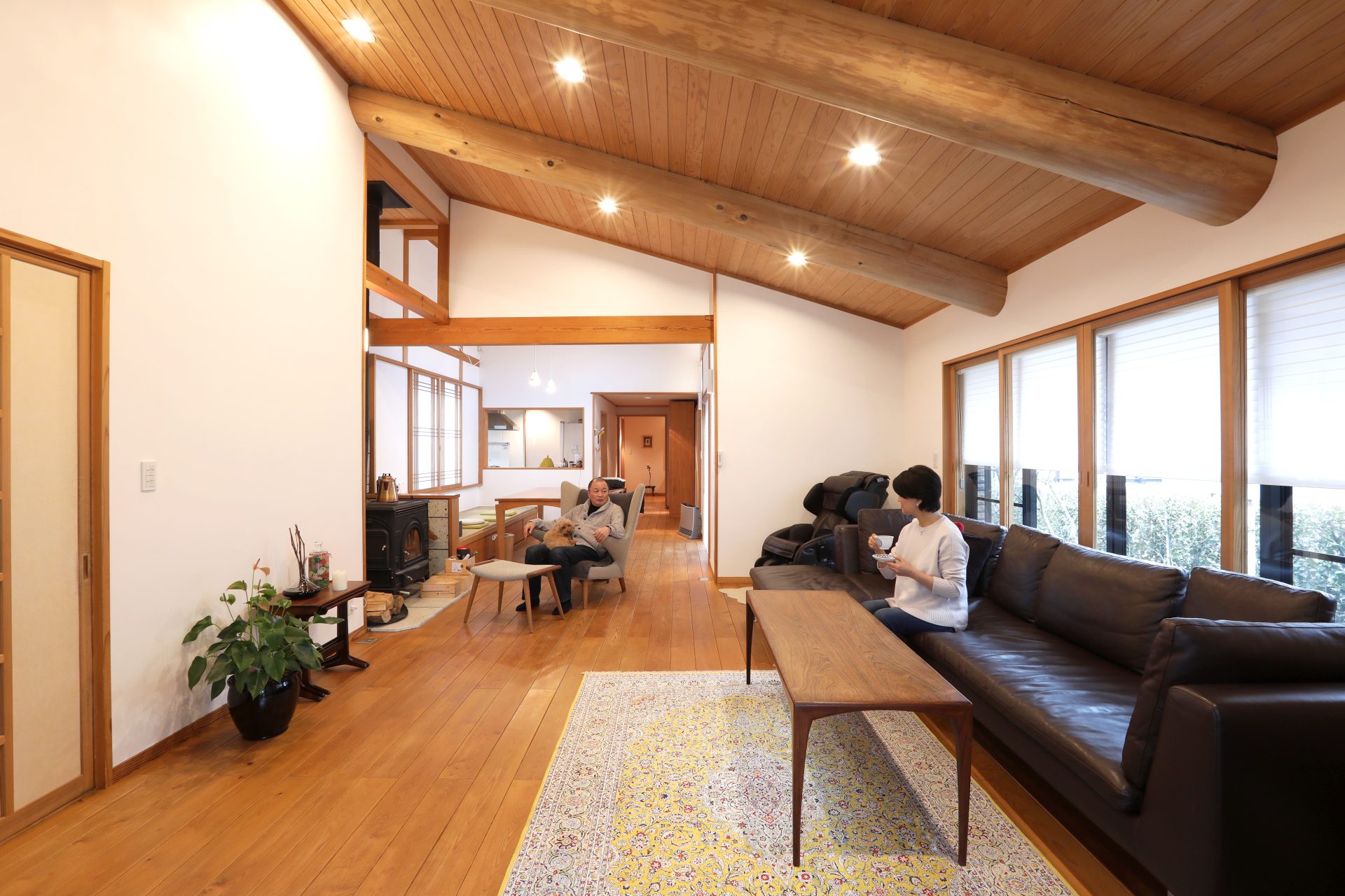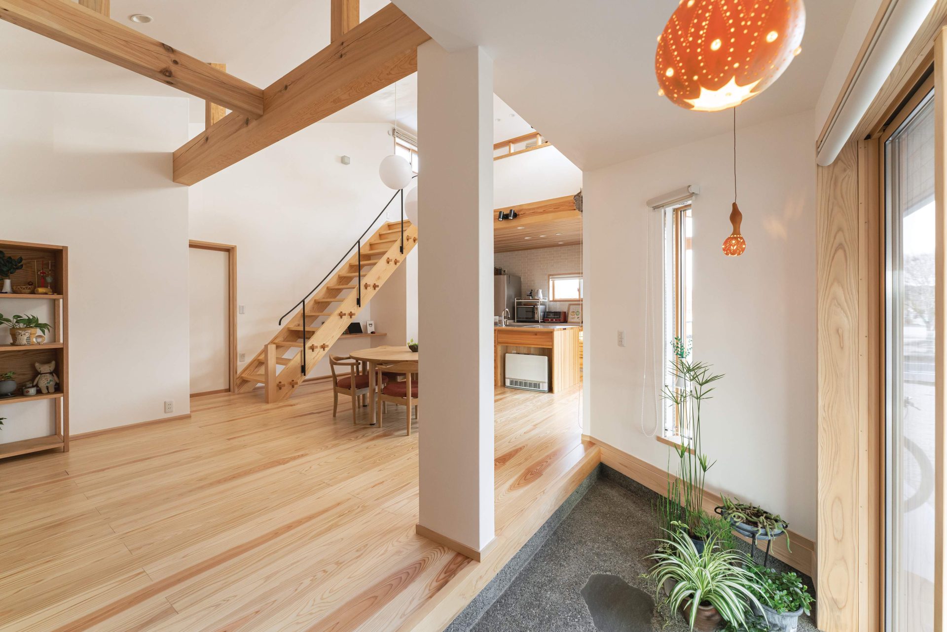 飴色の木材と白い漆喰壁コントラスがより美しく